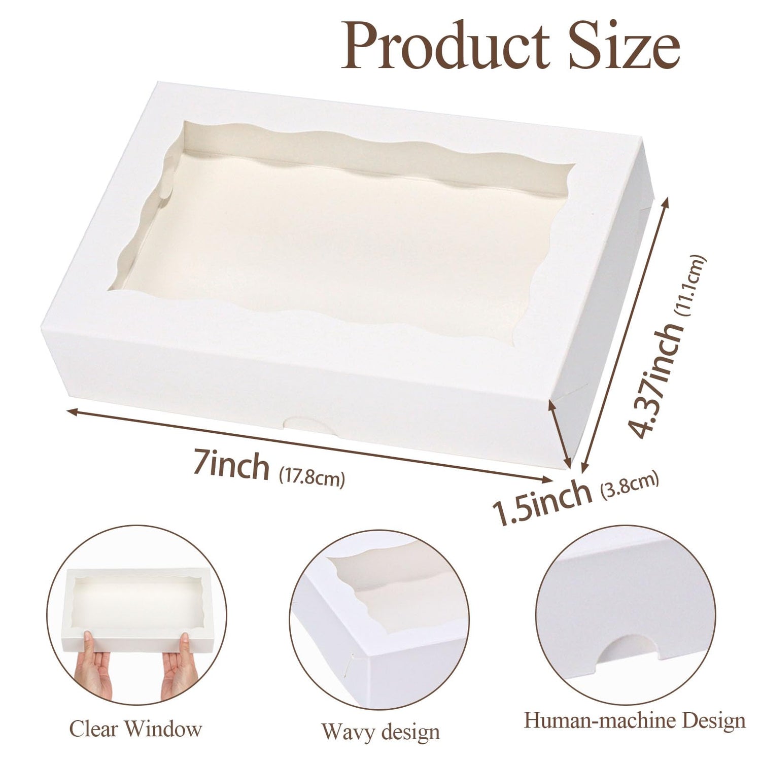 RomanticBaking 100 Pack White 7 x 4 3/8 x 1 1/2inches Cookies Boxes with Window Christmas Bakery Packaging for Macaron Treat Boxes Chocolate Truffle