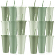Skylety 24 Pcs Sage Green Plastic Cups with Lids and Straws 24 oz Reusable Tumbler Large Travel Mug Cup Coffee Beverage Drinks Party Supplies for Christmas Wedding Bridal Baby Shower Birthday