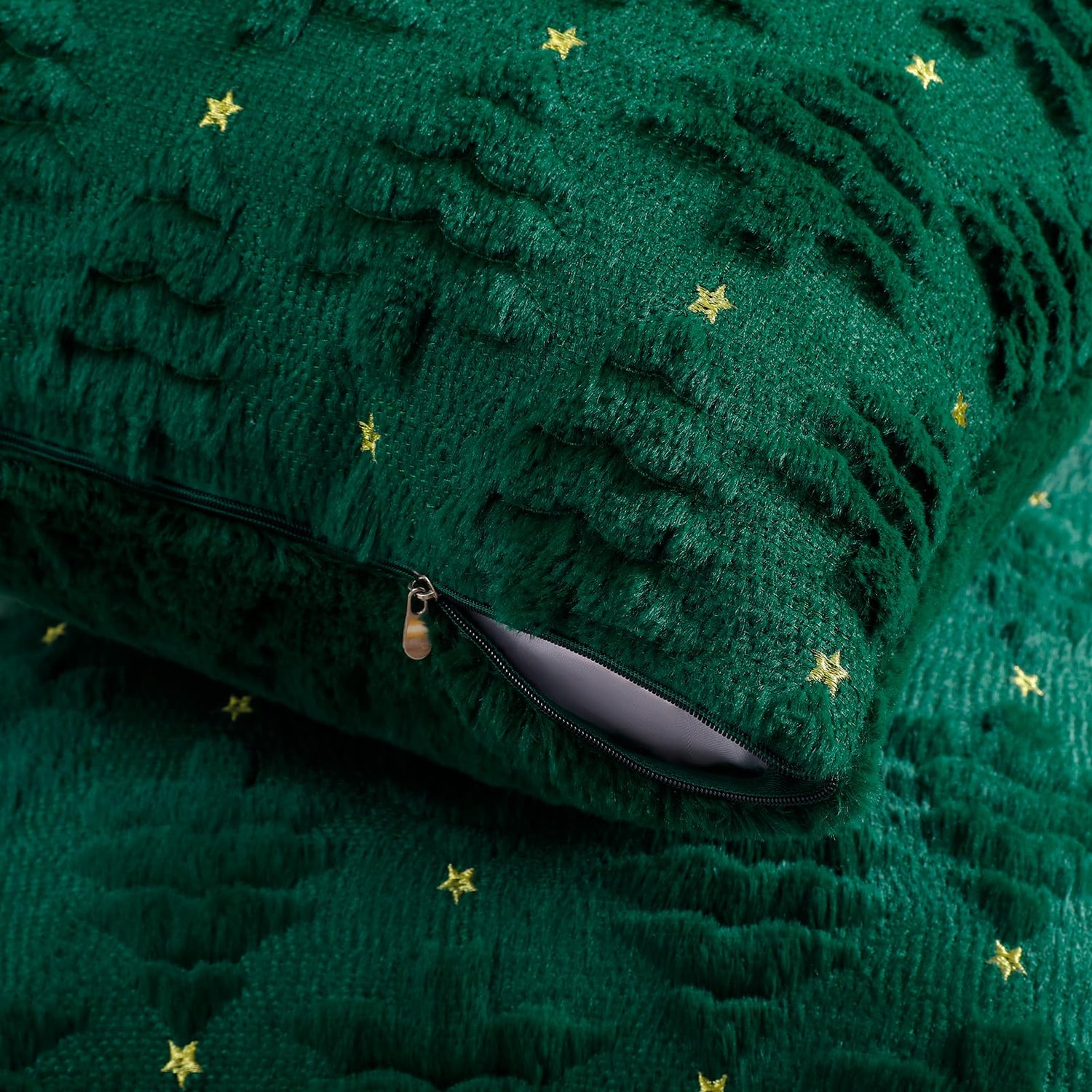 Softalker Christmas Throw Pillow Covers 22 x 22 Inch Set of 2, Xmas Winter Christmas Tree Faux Fur Cushion Covers, 3D Embroidered Pillow Cases for Couch Bedroom Living Room Decor, Green