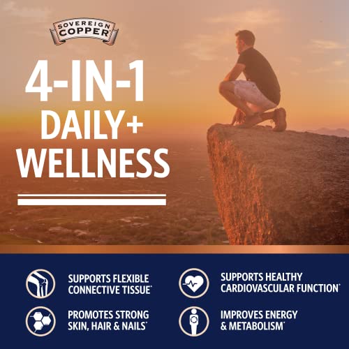 Sovereign Copper Bio-Active Colloidal Copper Hydrosol, Daily+ 4-in-1 Wellness Supplement for Joint and Bone*, Hair, Skin and Nails*, Cardiovascular Health* and Energy and Metabolism Support*, 32oz