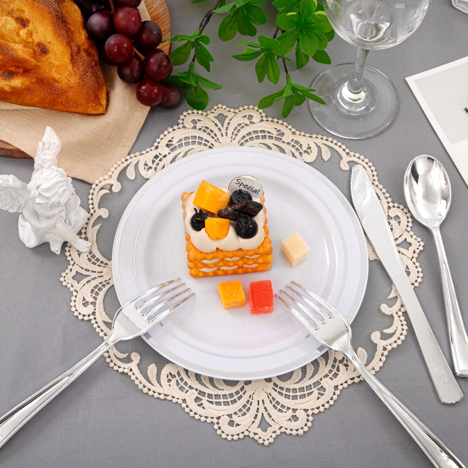 - For Any Occasion: The plastic silverware for parties is great to have for elevating a meal at home or catering events. The silver shine gives the plastic cutlery set an elegant look that is perfect for a reception, banquet, dinner party, or even for wedding silverware.