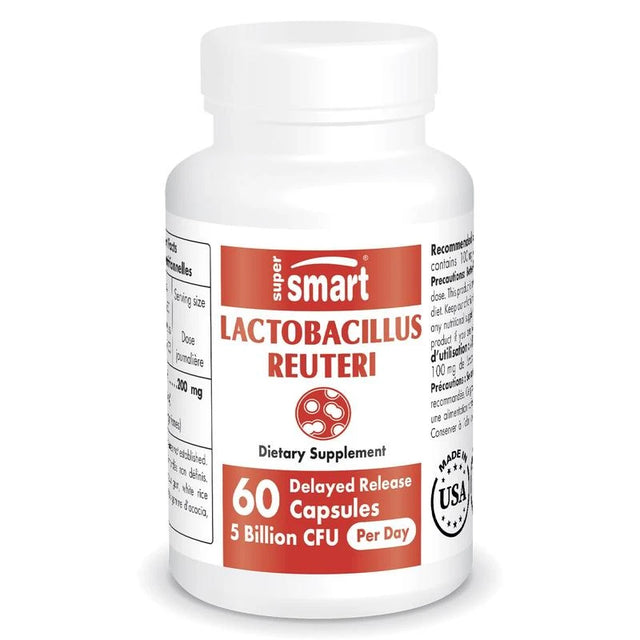 Supersmart - Lactobacillus Reuteri 5 Billion CFU per Day - Probiotic Supplement | Non-GMO & Gluten Free - 60 DR Capsules Edible Healthcare