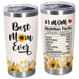 TEEZWONDER Christmas Birthday Gifts for Mom from Daughter Son - #1 Nutrition Facts Sunflower Stainless Steel Insulated Coffee Tumbler with Lid 20 oz - Mothers Birthday Gifts for Mama Grandma Women