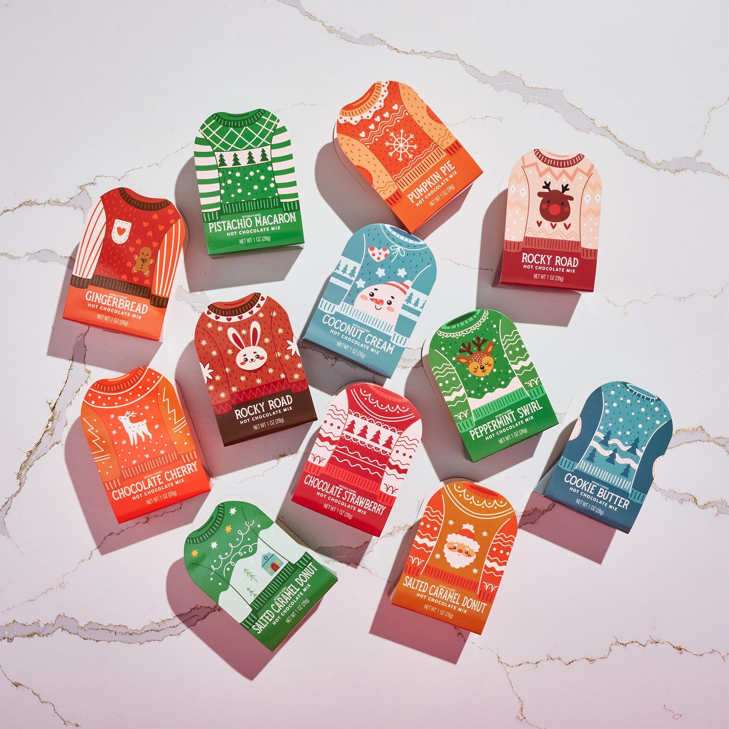 - HOLIDAY HOT CHOCOLATE SAMPLER – Includes 12 individually packaged gourmet cocoa mixes in festive ugly sweater packaging, perfect for Christmas gifting