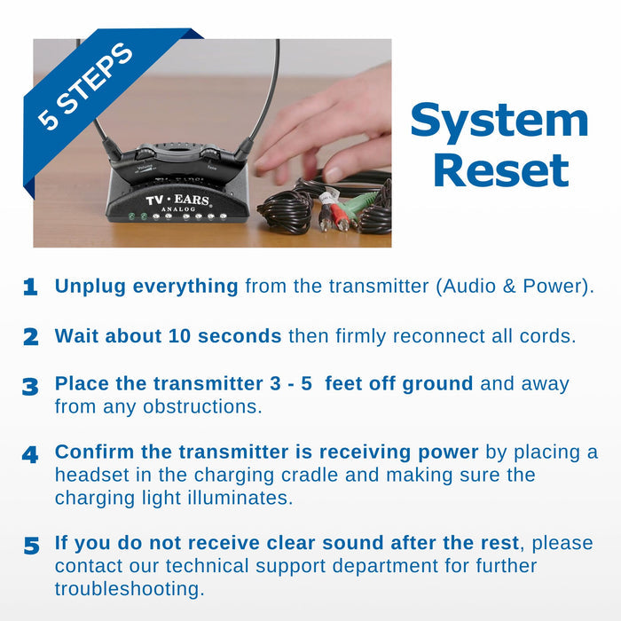 TV EARS Analog Wireless Headset System, Wireless Headset, Ideal for Seniors & those with Hearing Difficulties, Plug N' Play RF Transmitter with Earbuds, Compatible with Analog TV - 5.0GHz