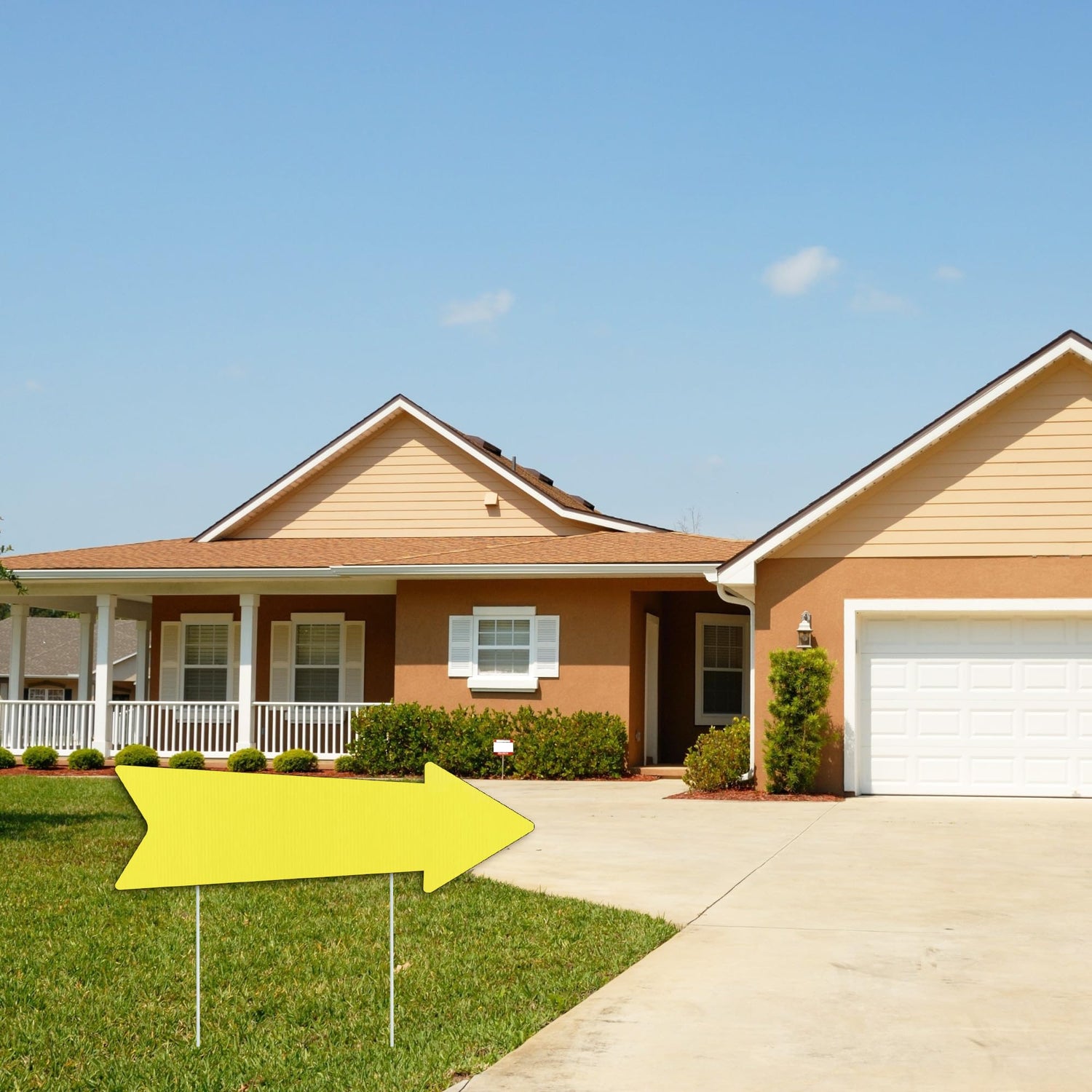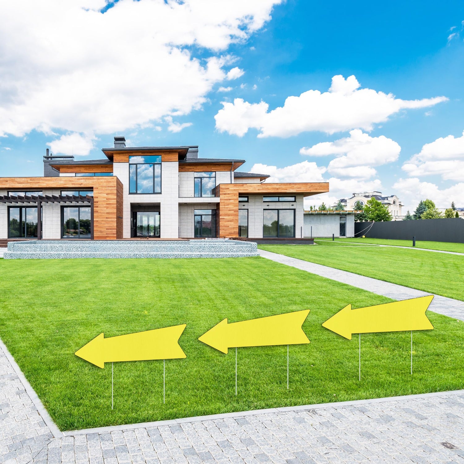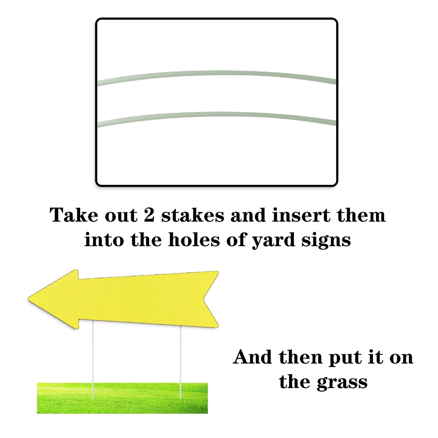 Each set includes 40 durable stakes and 20 large (16 "x5") yellow plastic arrow yard signs, with two stakes for each arrow.