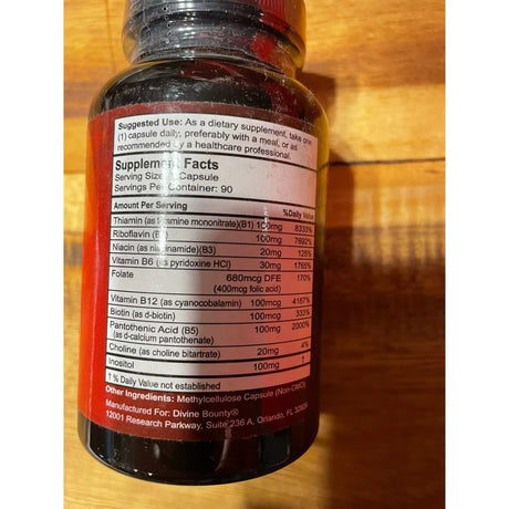 Divine Bounty Vitamin B Complex 90 Vegetarian Capsules X 3 Bottles