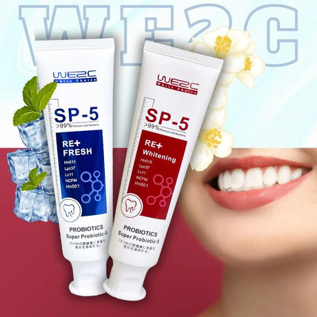 WE2C [SP-5 Probiotic toothpaste], Whitening Toothpaste-Freshens Breath,Fights Plaque - Flavor: red
