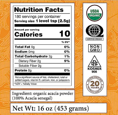 Heather's Tummy Fiber Organic Acacia Senegal for IBS, 16 Ounce Pouch