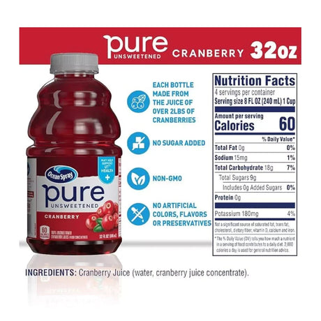 Ocean Spray Pure Unsweetened Cranberry 100% Cranberry Juice From Concentrate