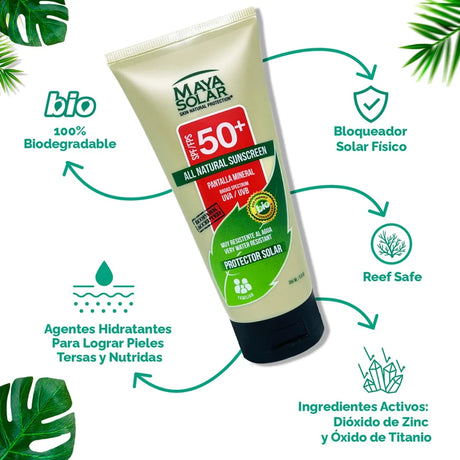 Maya Solar. Bloqueador Solar Corporal. 100% Biodegradable SPF 50+ Uso Diario 204 ml