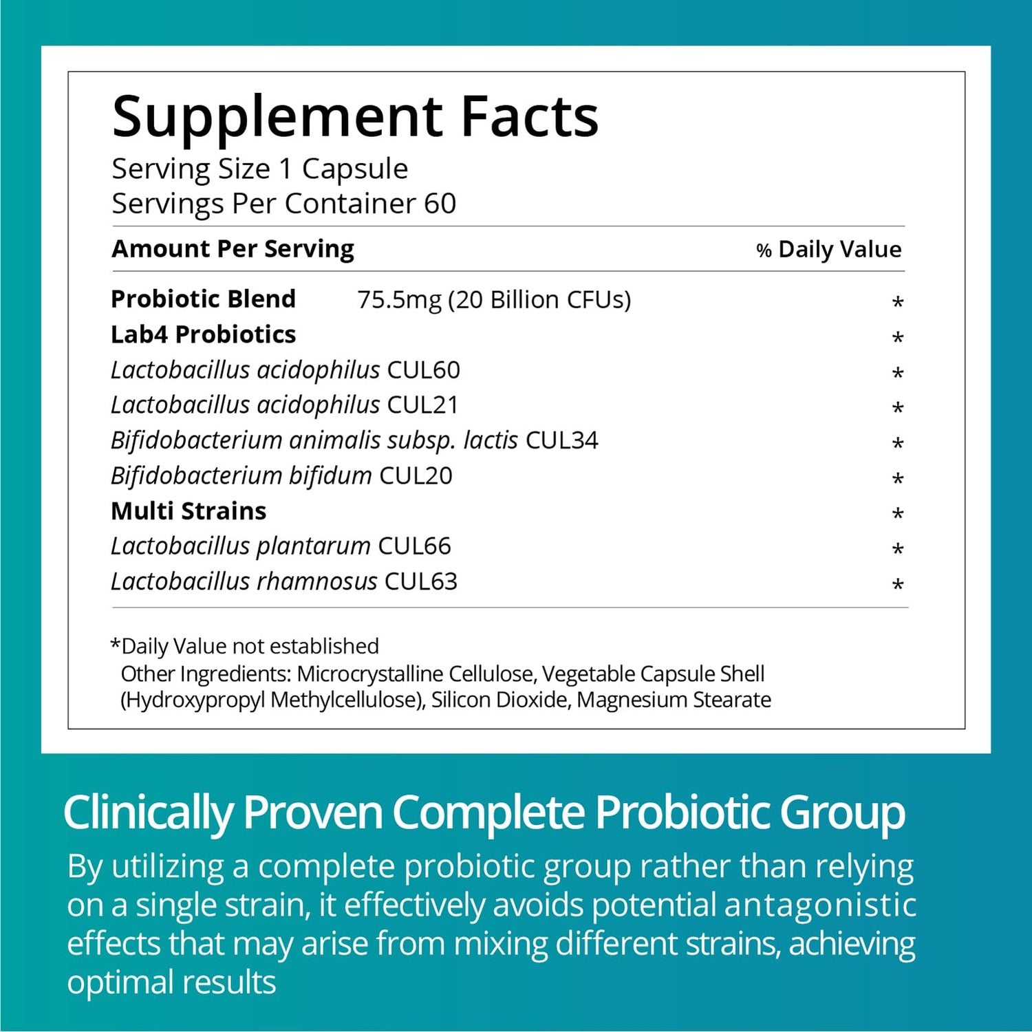 - COMPLETE & SPECIFIC PROBIOTIC GROUP: Our formula includes well-characterized strains with unique IDs: Lactobacillus acidophilus CUL60 and CUL21, Bifidobacterium bifidum CUL20, Bifidobacterium animalis subsp. lactis CUL34, Lactobacillus plantarum CUL66, and Lactobacillus rhamnosus CUL63. These strains are selected to work synergistically in promoting a diverse healthy microbiome