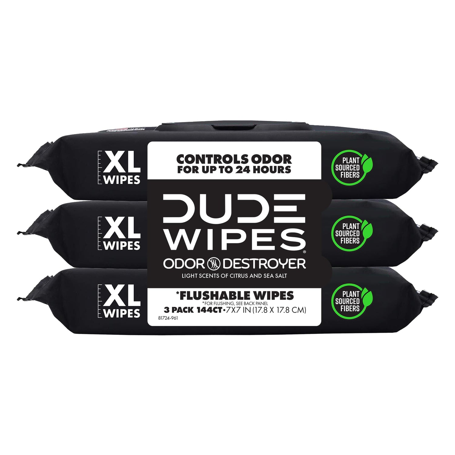 DUDE Wipes - Flushable Wipes for Adults - 6 Pack, 288 Wipes - Odor Destroyer XL Adult Wet Wipes - Deodorizing with Clean Scent - Up to 24 Hours of Odor-Destroying Technology