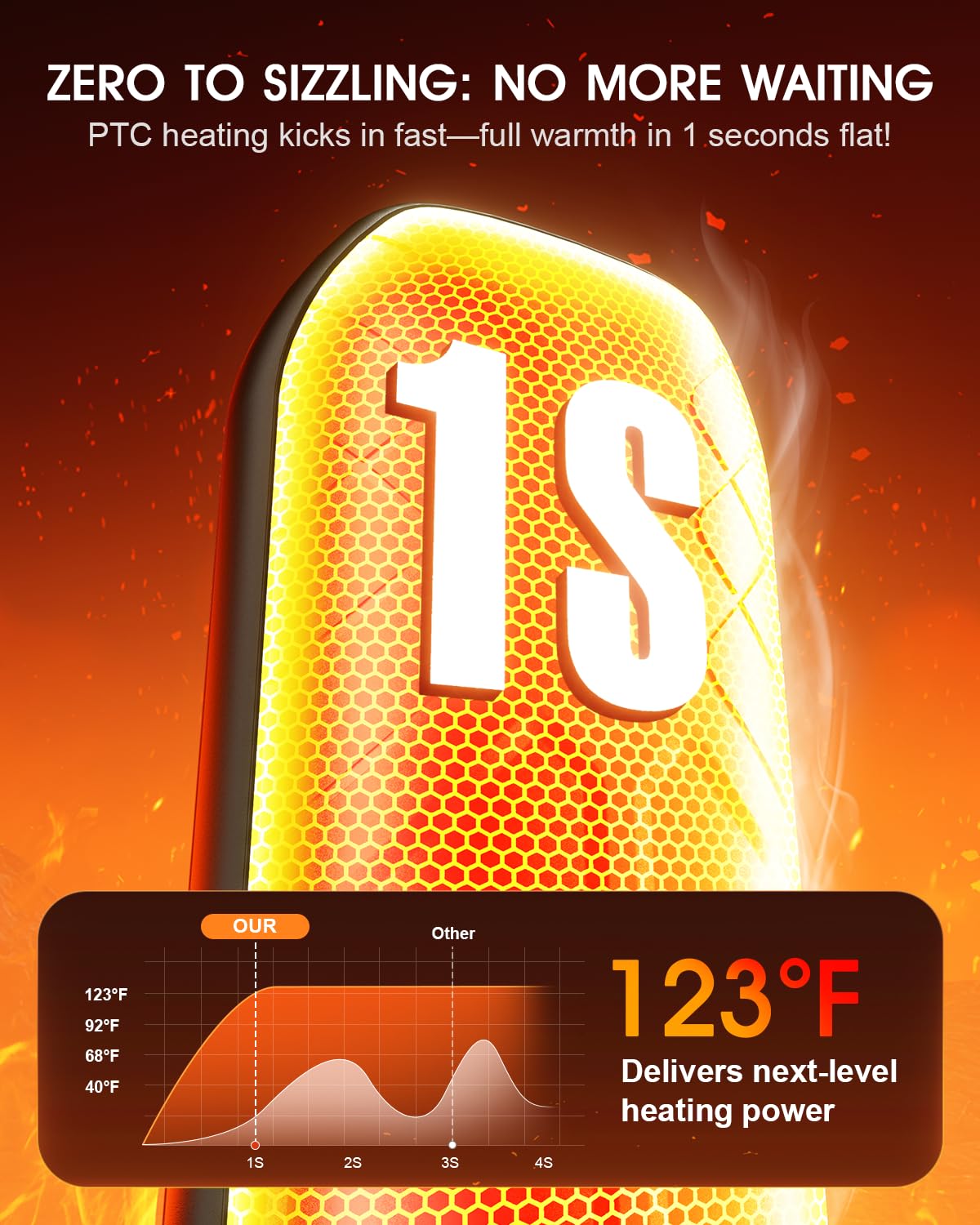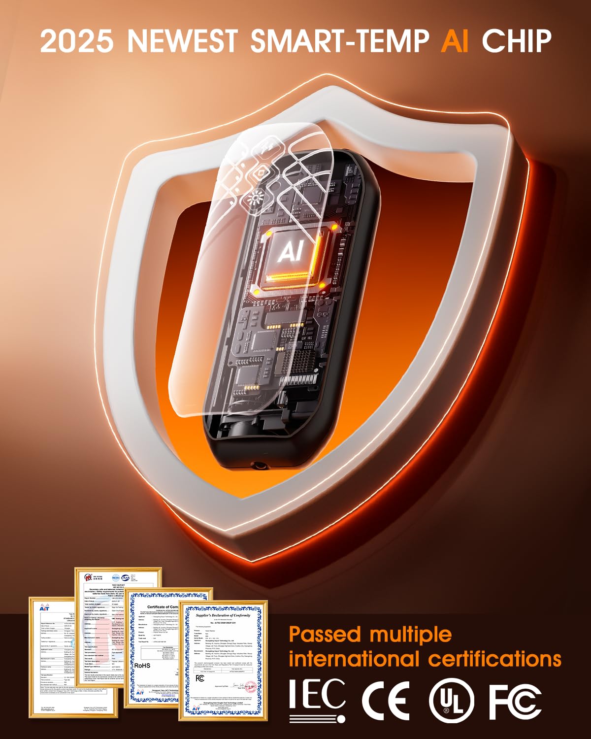 - 【AI Temperature Sensor Chip】 Experience instant warmth with cutting-edge PTC technology—reaching a toasty 120°F (about 49°C) in just one second! With five customizable heat settings and smart AI-driven temperature control, you can easily shift from an energy-saving 98°F (ideal for chilly days) to a high-heat 131°F (perfect when it’s freezing out)—all with the push of a button. Quick, effortless, and engineered for comfort.