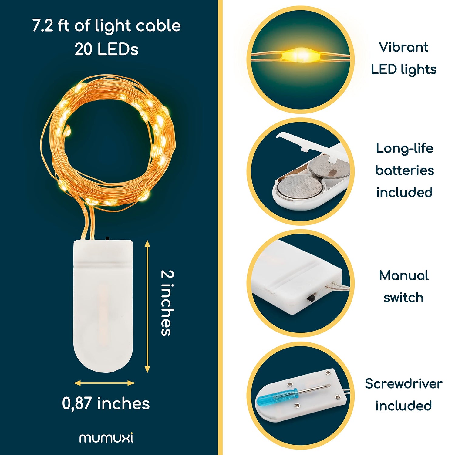 - Easy To Use & Safe To Touch - Each of our products is high quality at Mumuxi and this one is no exception. Save time and effort with replaceable batteries and a tiny on/off switch to turn them on for parties and switch ‘em off when everyone leaves. Incredibly low voltage makes these lights super safe in your home or place of work and carries no risks.
