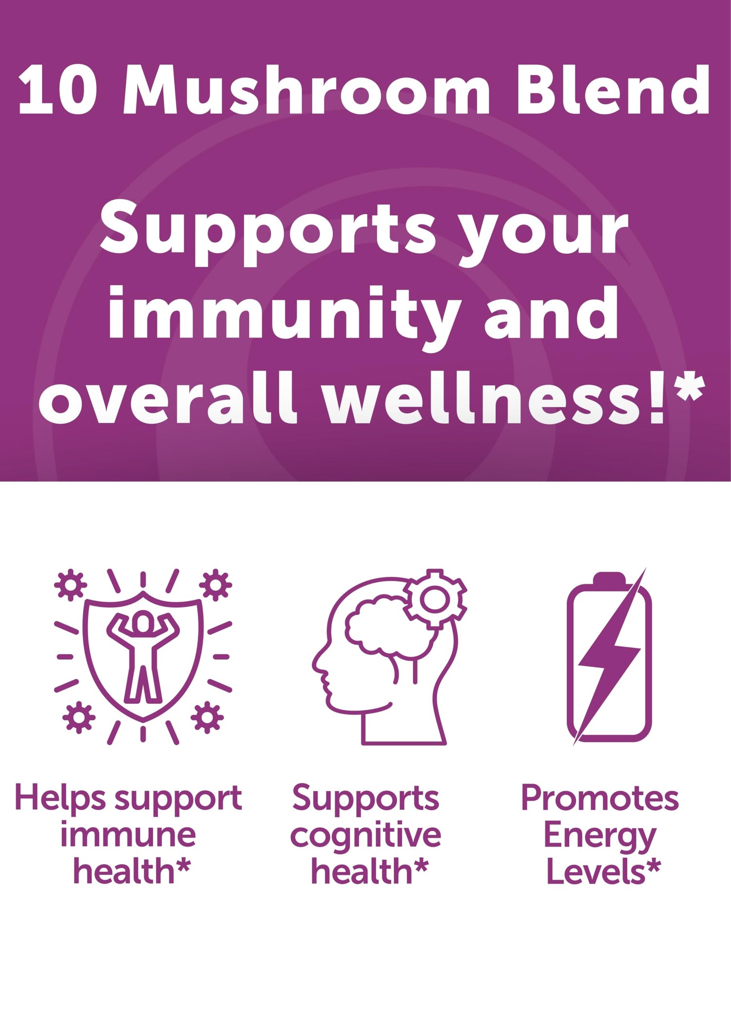- Comprehensive 10 Mushroom Blend – Packed with Lions Mane, Reishi, Cordyceps, and more functional mushrooms, this multi-mushroom supplement is designed to support overall wellness and vitality.