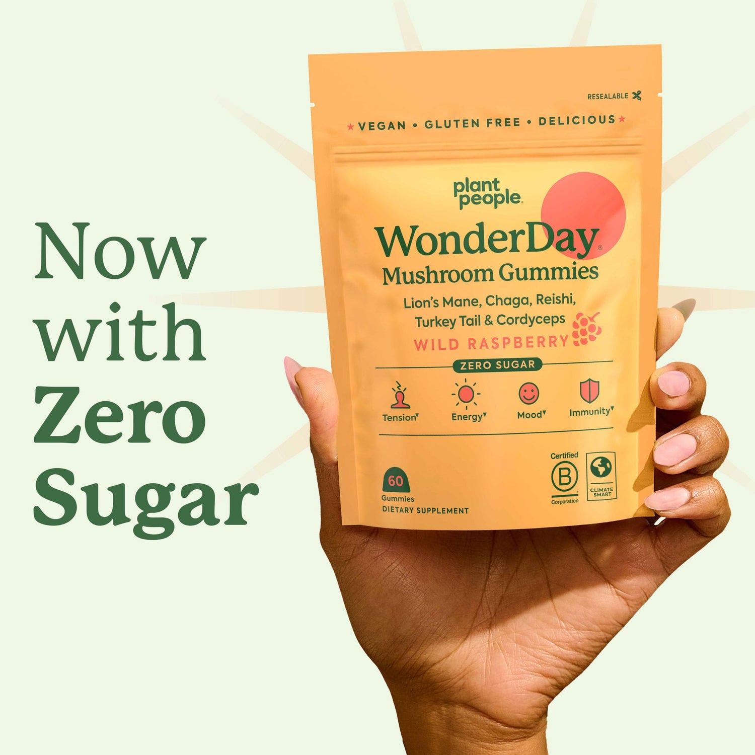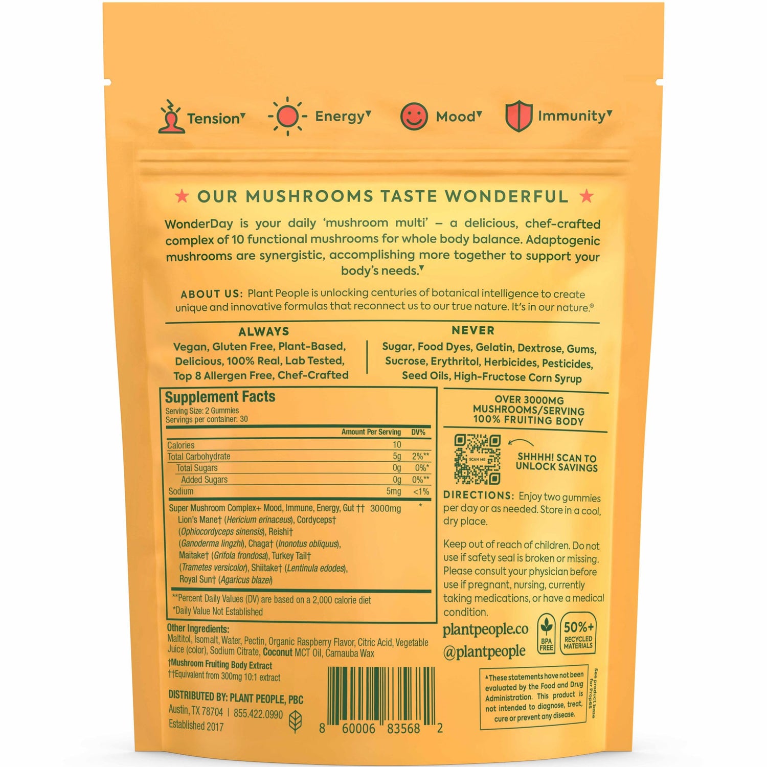 Plant People WonderDay Mushroom Gummies - Lion’s Mane, Cordyceps, Chaga Mushroom Supplement to Support Immune System De-Stress Boost Mood & Energy in Adults Natural, Vegan, Non-GMO (60 Count)