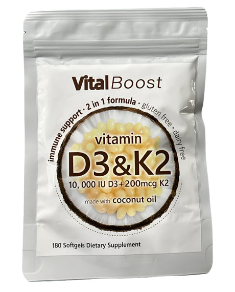 D3 & K2 10,000IU/200mcg Made With Coconut Oil, 180 Soft gels