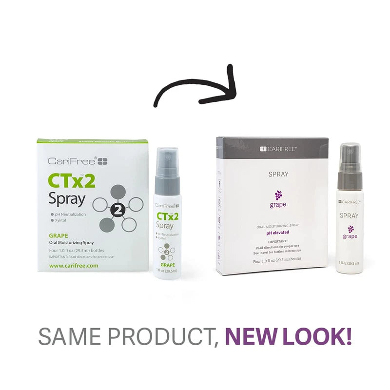 • [MOISTURISE YOUR MOUTH]: CariFree’s oral moisturizing Spray (CTx2 Spray) helps to soothe and moisten your mouth. Patients with bad breath (halitosis) also benefit from the regular use of our CariFree Spray. NEW! LARGER 1 OZ SPRAY BOTTLE! Each box contains four 1 fl oz spray bottles.