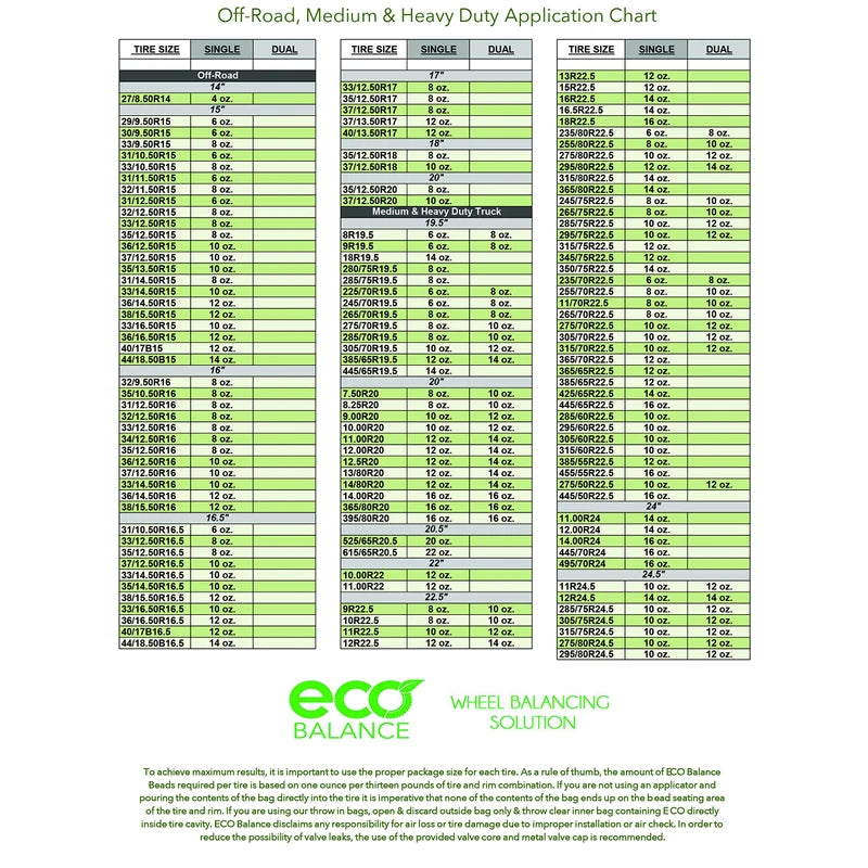 - TPMS Friendly, Complete Axel End Balance, Extend Tire Life, Decrease Vibration, Balanced for the life of the tire, No Wheel Weights, Eco-Friendly.
