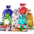 - Christmas Drawstring Gift Bags - These holiday foil gift bags are made of PE with aluminum foil, sturdy and heavy duty, and the ribbon drawstring design makes wrapping presents a breeze