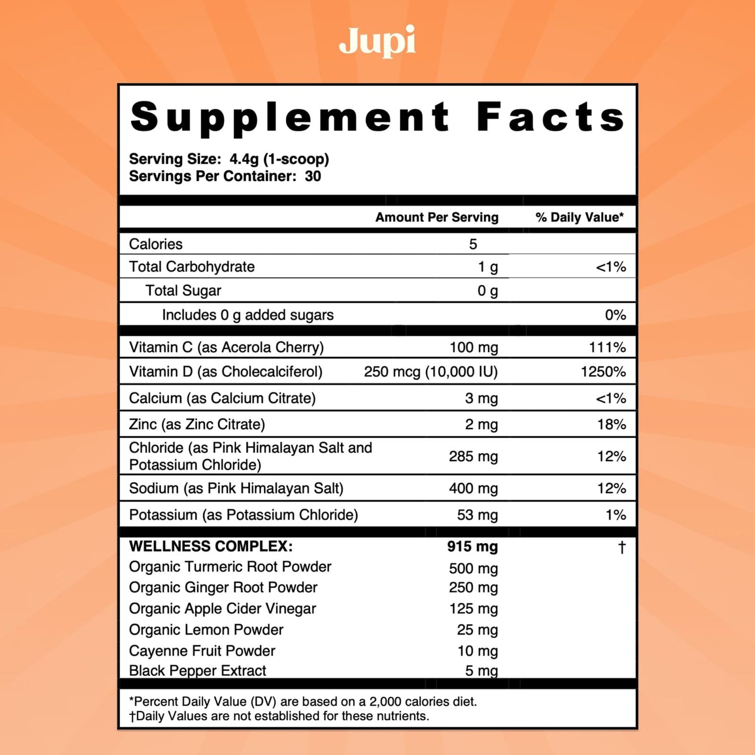 Jupi Hydration & Wellness Powder – Turmeric & Ginger shots, Vitamin C Supplement for Energy, Immune Support & Digestive Health – Vegan, Gluten-Free Drink Mix for Men & Women, Citrus Flavor 30 servings
