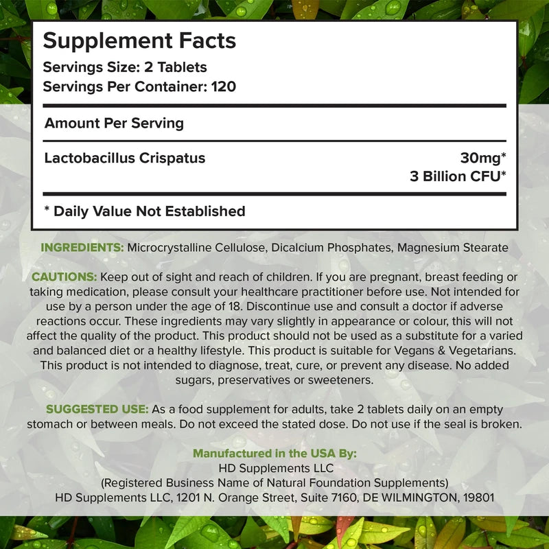Lactobacillus Crispatus Probiotic Supplement 240 Tablets 3 Billion CFU Probiotics for Men & Women Supports Vaginal Digestive & Gut Health Made in The USA (240, Lactobacillus Crispatus)