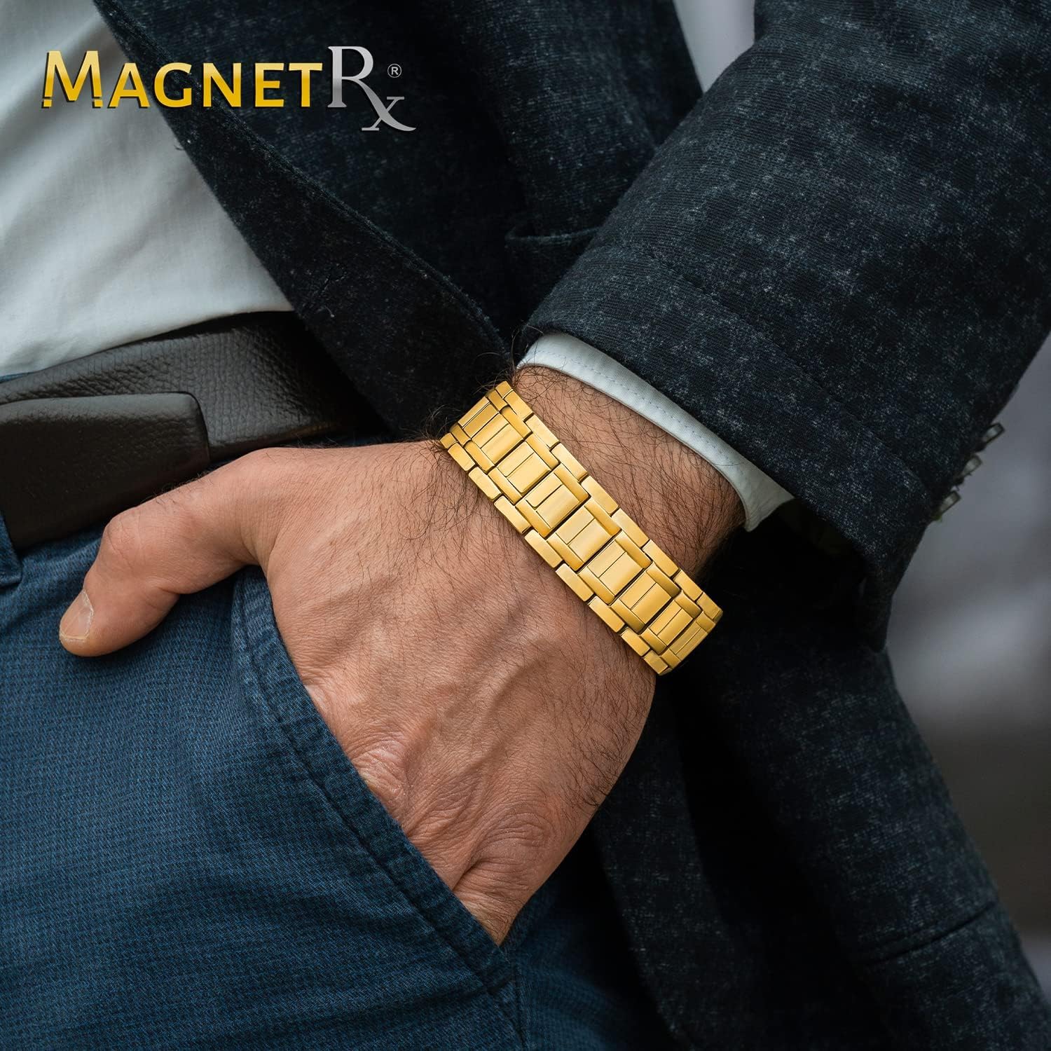 MagnetRX® 3x Strength Magnetic Bracelets for Men – Effective Magnetic Mens Titanium Bracelet – Premium Fold–over Clasp & Adjustable Length with Sizing Tool & Gift Box (Gold)