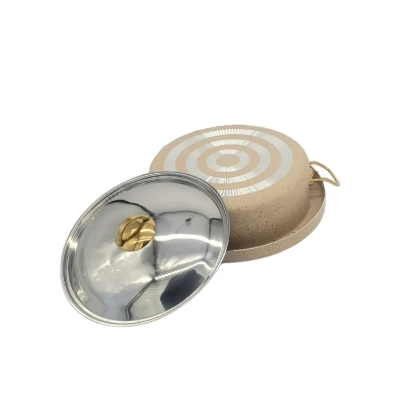 • 3 Pcs Maqluba Aluminum Granit Coated Pot - Pot + Tray + Lid - Stainless Steel Lid - Non-Stick Pot - 34cm Diameter x 11cm Hight