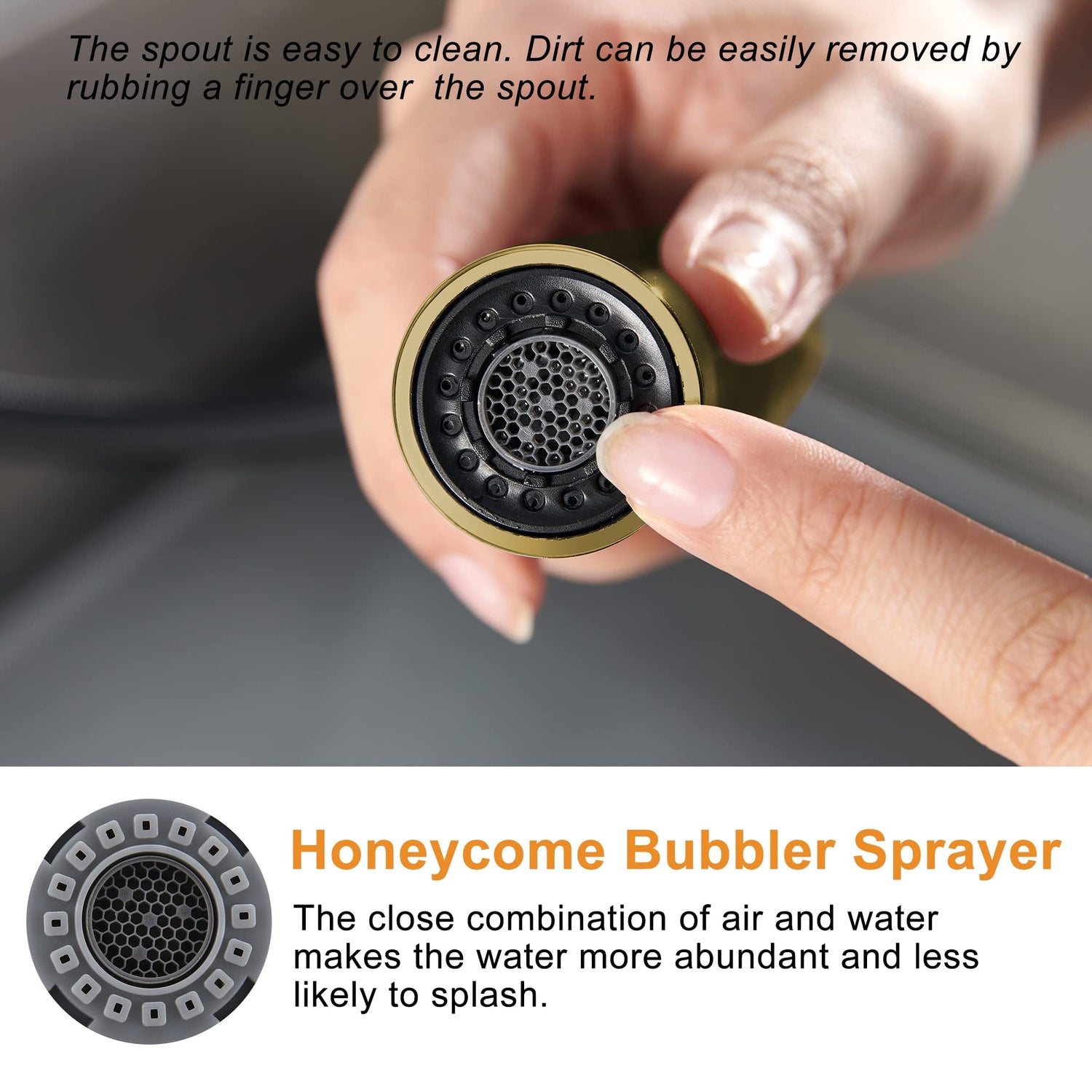 - 【SIMPLE TO INSTALL WITHOUT TOOLS】 It's very easy to install this kitchen faucet nozzle , you just need to unscrew the old one and screw the new one rotating on.