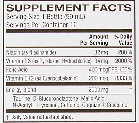 Amazon Brand - Solimo Energy Shot, Berry Flavor, 2 fl oz (Pack of 12)