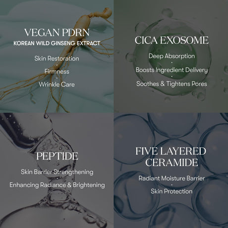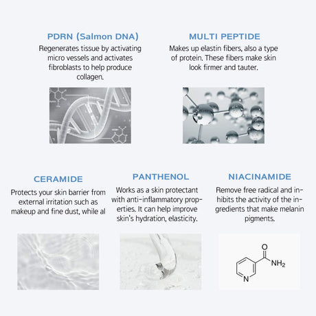 PDRN (Salmon DNA derivative) and peptides stimulate collagen production, improving firmness and elasticity. Niacinamide brightens the skin and regulates sebum, while CICA Exosome soothes irritation and supports barrier repair. Over consistent use, users report reduced pore visibility, improved hydration, and a plumper, more radiant complexion. Ideal for combination to oily skin types, it is also safe for sensitive skin due to its gentle formulation.