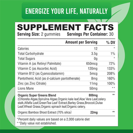 Superfood Daily Greens Gummies - Fruits, Veggies, and Super Foods for Immunity, Energy - 60 Gummies