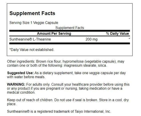 Swanson Amino Acid Double Potency Suntheanine L-Theanine 200 Milligrams 60 Veg Capsules