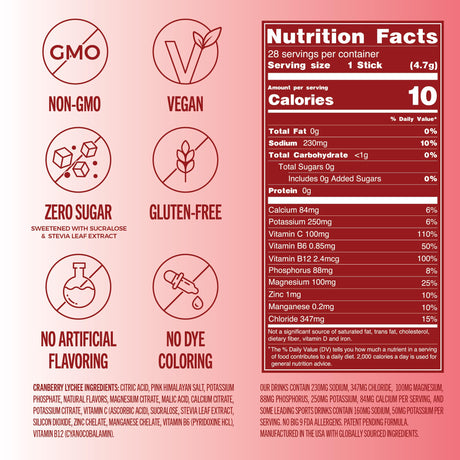 TREVI™ Sugar Free Electrolytes - Drink Mix Hydration Powder Packets - 28 Count - Cranberry Lychee