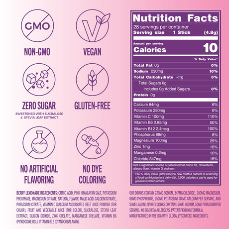 TREVI™ Sugar Free Electrolytes - Drink Mix Hydration Powder Packets - 28 Count - Berry Lemonade