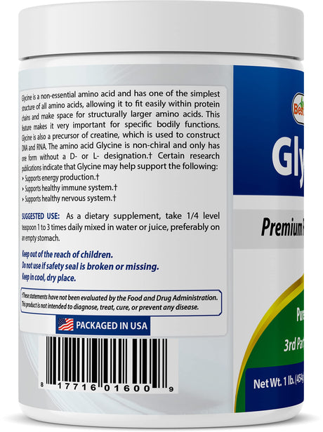 Best Naturals Glycine Powder 1 LB - Neurotransmitter & Relaxation Support
