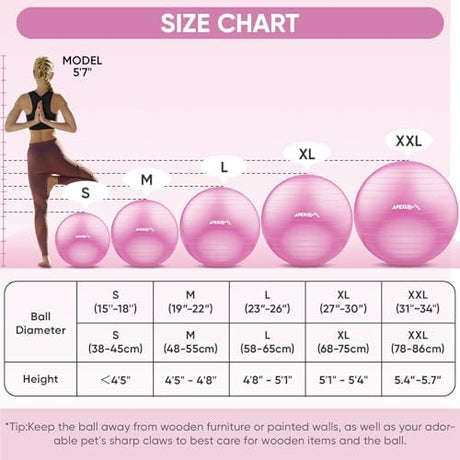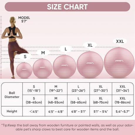 APEXUP Yoga & Pilates Ball - Anti Slip Heavy Duty Gym Ball for Fitness, Balance & Core Workout