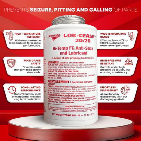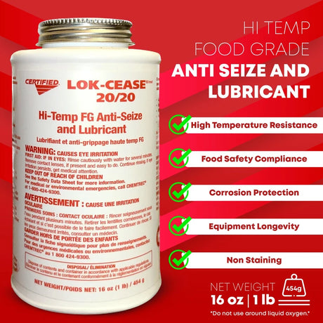 Certified Labs Lok Cease 20/20 Hi Temp Food Grade Anti Seize and Lubricant (16 Oz Bottle X1), White