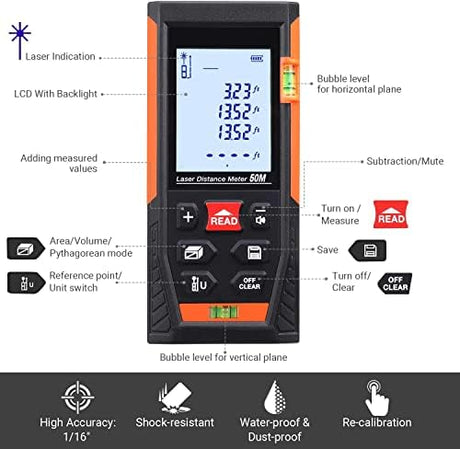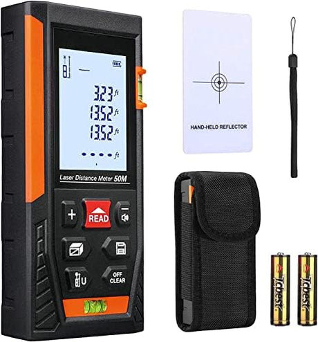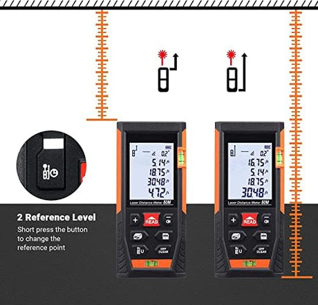 Laser Measure Mute Distance with 2 Bubble Levels, Measure Distance, Area and Volume HD50