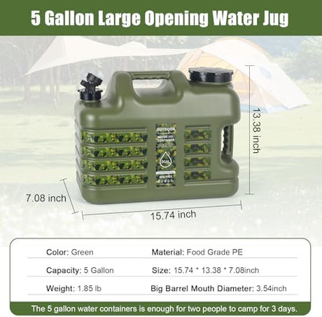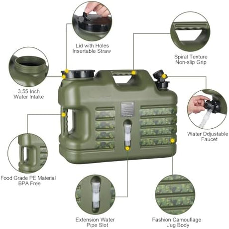 3 Gallon/5 Gallon Water Jug with Spigot, Portable Water Tank BPA Free, Leak-Proof Water Containers for Camping Water Storage Containers for Emergency Outdoor Hiking Picnic, Green/Yellow/White