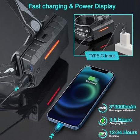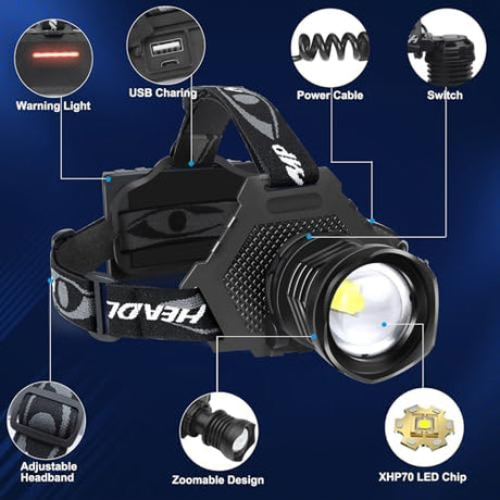Aikertec Rechargeable LED Headlamp 5000 Lumen, Super Bright Head Lamp Flashlight with 5 Lighting Modes, IPX6 Waterproof, Zoomable Headlight for Camping, Hiking, Fishing, Biking, Running (2 Pack)