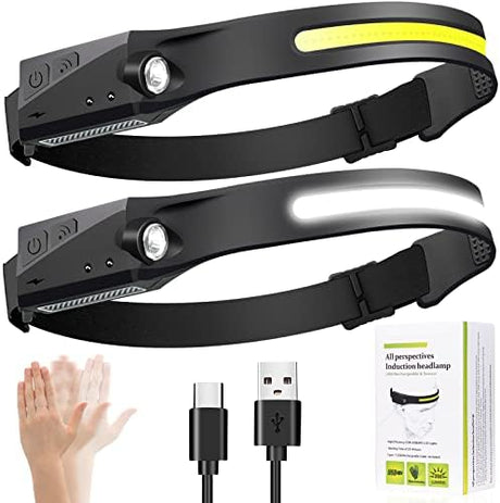 Headlamp Rechargeable 2Pack, Rechargeable LED Headlamp,230° Wide Beam,with Motion Sensor,5Brightness Modes, IPX6 Waterproof, High Lumen Headlight for Running,Repairing, Camping, Hiking, Fishing