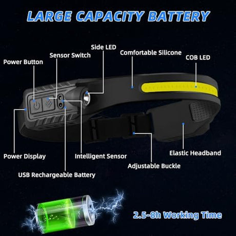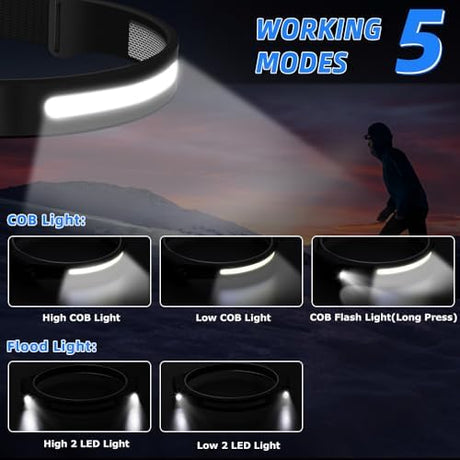 Rechargeable Headlamp with 2 Spotlights, 3Pack LED Headlamp, 230° Wide Beam Head Lamp, Motion Sensor Headlight, 5Mode Head Lights for Forehead Waterproof, Headlamps for Adults Hard Hat Running Camping