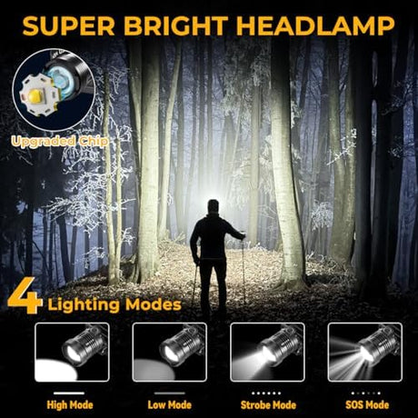 Headlamp Rechargeable 2Pack, Super Bright Head Lamp, Adjustable Focus LED Headlamp, 90°Angle Head Lights for Forehead, 4Mode Headlight, Headlamps for Adults Hard Hat Camping Essentials Gear