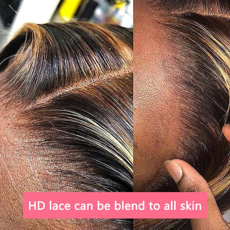 ABALON FB/27 28 Inch Highlight Balayage Lace Front Wig Human Hair 13x4 HD Lace Frontal Wigs Human Hair Body Wave Wig 200% Density Ombre Glueless Wigs Human Hair Pre Plucked with Baby Hair for Women