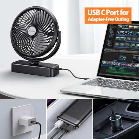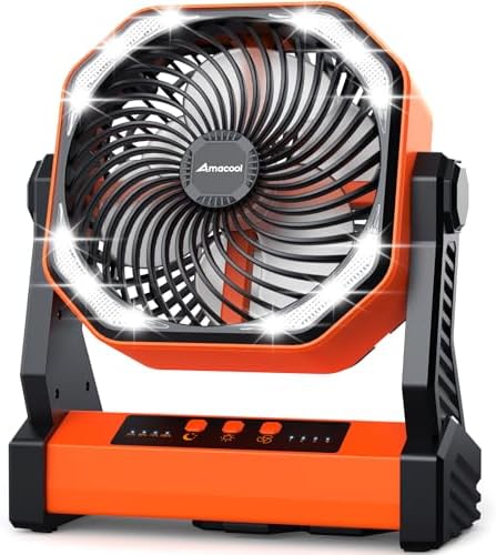 Battery Operated Camping Fan, 20000mAh Rechargeable Portable Fan, 4 Speed Outdoor Fan with LED Light and Hook for Tent Car Travel Jobsite Fishing Outdoor Hurricane Power Outage
