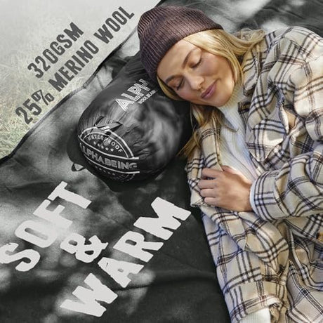 AlphaBeing Waterproof Outdoor Blanket with Merino Wool, Extra Thick Warm, Windproof, Packable Stadium Blankets for Cold Weather, Camping Gift, Pet, Car, Picnic, Concerts, 79" x 59", Black/Gray