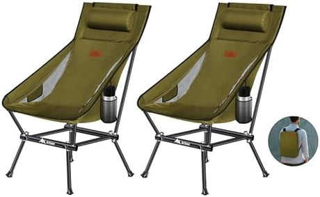 Camping Chair, Compact Backpacking Chair, Portable Folding Chair, Beach Chair with Side Pocket and headrest, Lightweight Hiking 188ZZ-SJB (Green 2 Pack)