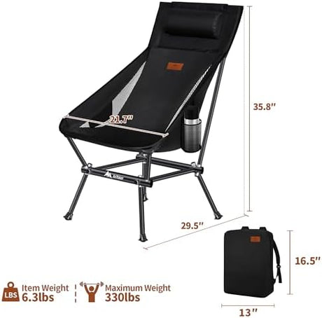 Camping Chair, Compact Backpacking Chair, Portable Folding Chair, Beach Chair with Side Pocket and headrest, Lightweight Hiking Chair 166ZZ-A